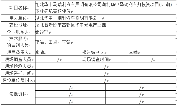 湖北華中馬瑞利汽車照明有限公司湖北華中馬瑞利車燈投資項目(四期)