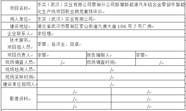 東實(武漢)實業有限公司蔡甸分公司新增新能源汽車鋁合金零部件智能化生產線項目